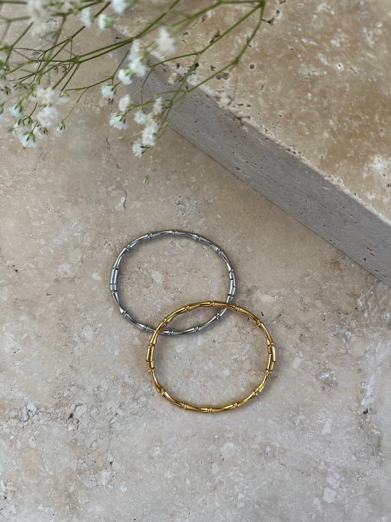 Der filigrane Armreif aus Edelstahl ist 14k vergoldet und in den Farben Gold oder Silber erhältlich. Ein stilvolles Accessoire, das Ihrem Outfit einen Hauch von Eleganz verleiht. Perfekt für besondere Anlässe oder den Alltag.