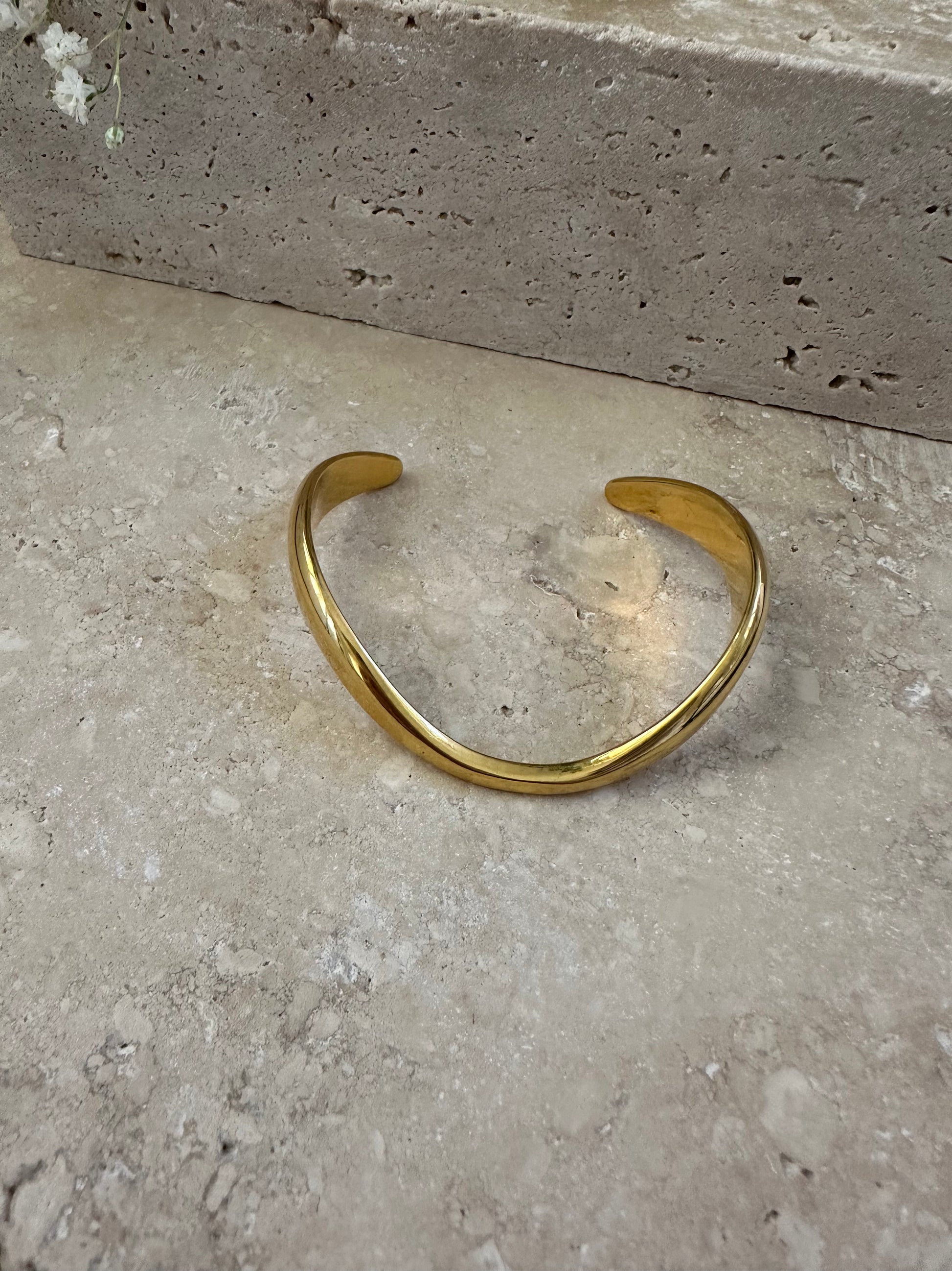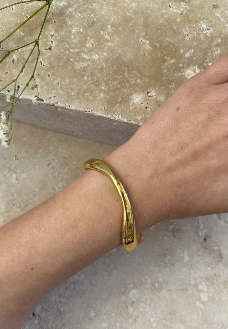 Der Armreif Curve ist der perfekte Begleiter für jede Gelegenheit. Hergestellt aus hochwertigem Edelstahl und vergoldet mit 14k, besticht er durch seine edle Optik. Mit seiner kursiven Form ist er ein echter Hingucker am Handgelenk.