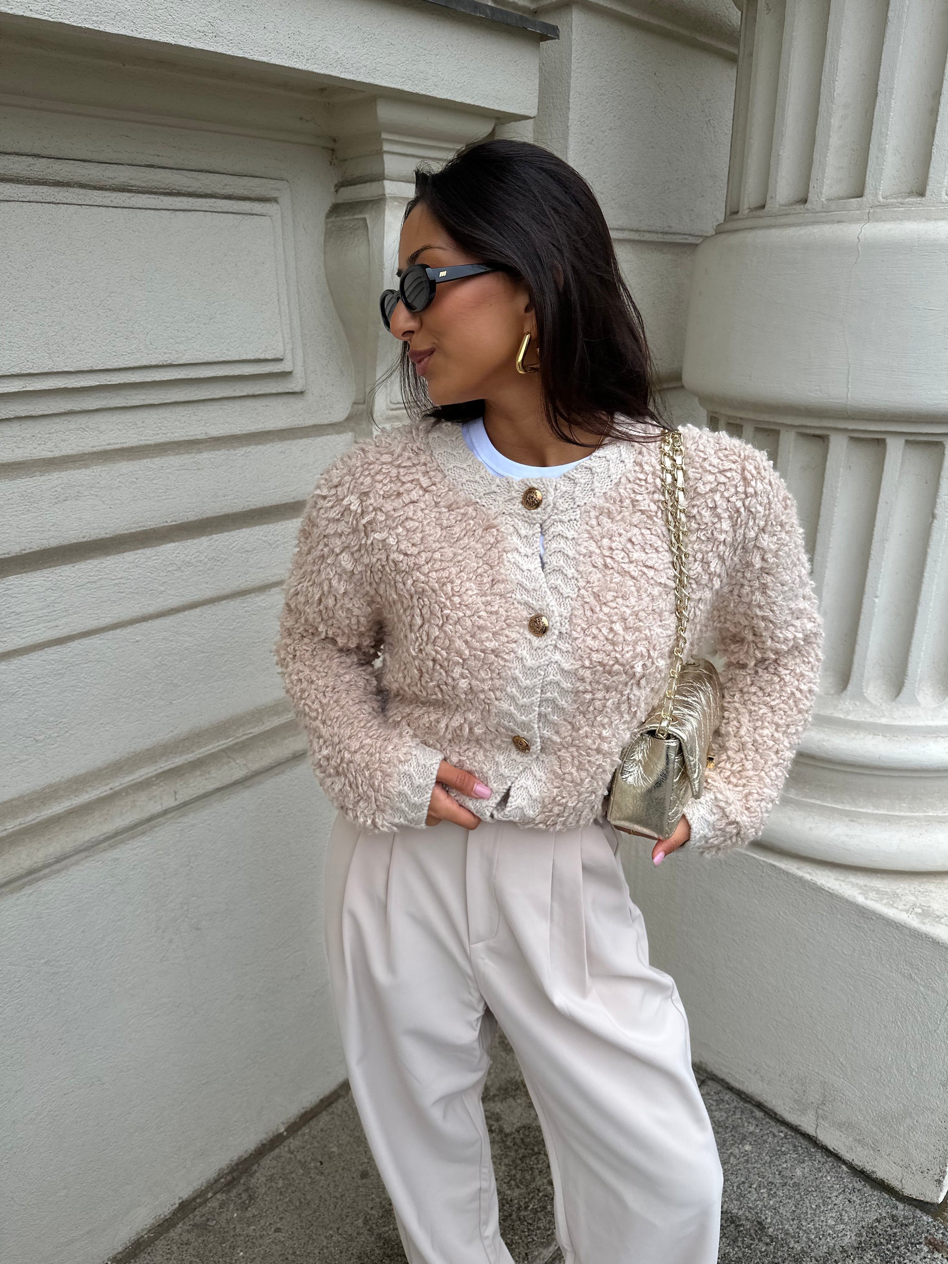 Teddy Strickjacke Beige